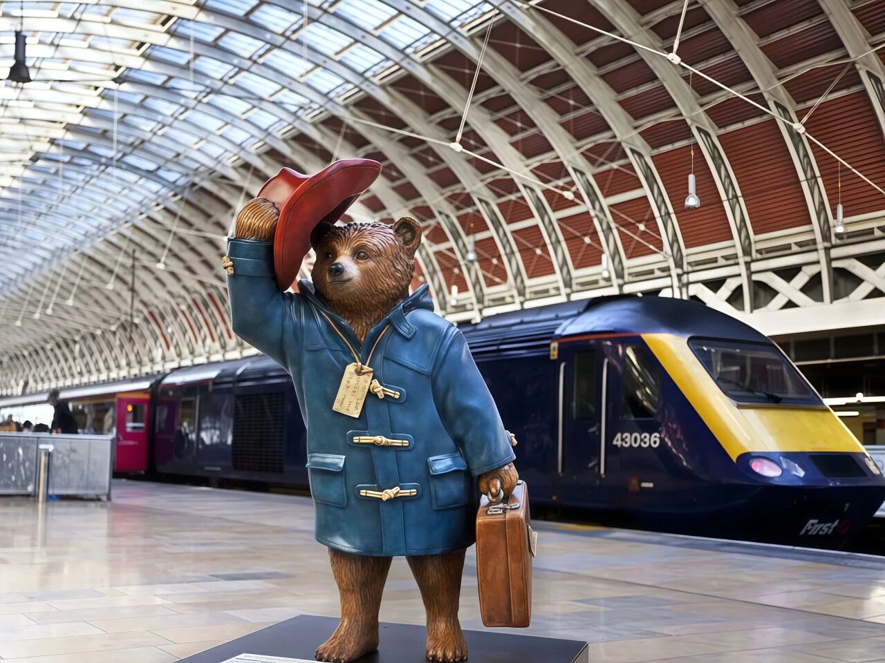 相比住宅街道的静谧,城市节点空间则承载着更鲜明的情绪记忆。帕丁顿火车站,是《帕丁顿熊》的故事起点,如今站内外依然保留着帕丁顿熊雕塑与相关元素。这里既是繁忙的交通枢纽,也是亲子游客与影迷必到的合影地点,电影记忆与日常通勤在同一空间中自然共存。